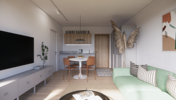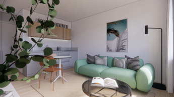 Currently, the 55.39 m² apartment is being refurbished into two smaller apartments. The planned installation is shown in the visualizations. The apartments will be oriented towards short-term rent. The planned price for one apartment (two rooms) during the summer season is 100 EUR per day and for the other apartment (single room) is 70 EUR per day. The project owner plans to generate up to EUR 15,000 in rental income per calendar year.