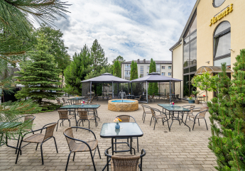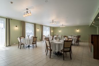 The hotel covers an area of 1080.44 m², consisting of 19 rooms, a conference room, a restaurant, a café, and common areas. The hotel has a private territory, including parking for guests. The site is guarded and monitored with security cameras.