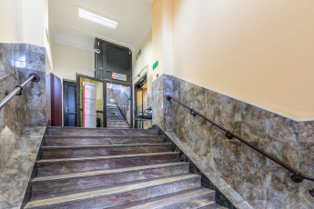 This building will be modernised and reconstructed. The plan is to develop 25 m² and 40 m² apartments for rent. Renovation works will initially be carried out, including facade renewal, replacement of window frames, plumbing and electrical systems. Subsequently, the apartments will be partially fitted out on all floors of the building. The living space of the building is not encumbered by complex technical solutions. This allows for the use of the most efficient and sought-after housing solutions.
