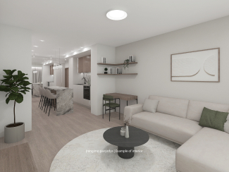 The area of the financed apartment with partial finishing – 49.60 m². The first phase finances the acquisition of the property, followed by a second phase, after the installation, to pay the contractors.