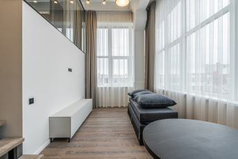 The total area of the building – 2869.63 m². The project is planned to be converted into 52 separate loft apartments, of which 4 apartments located on the sixth floor of the building will offer higher class units with private terraces with panoramic views.