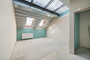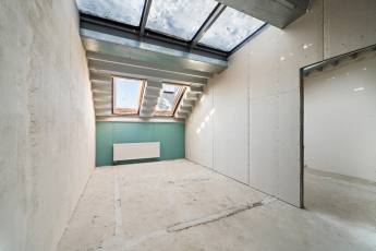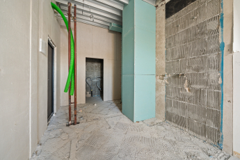 Since the first financing stage, all preparation works have been completed on the fifth and sixth floors. Partition walls, plumbing, heating, and recuperation systems have been installed in all apartments on these floors, and the corridor on the sixth floor has already been fully fitted out. In addition, partition walls have been installed on the third and fourth floors.